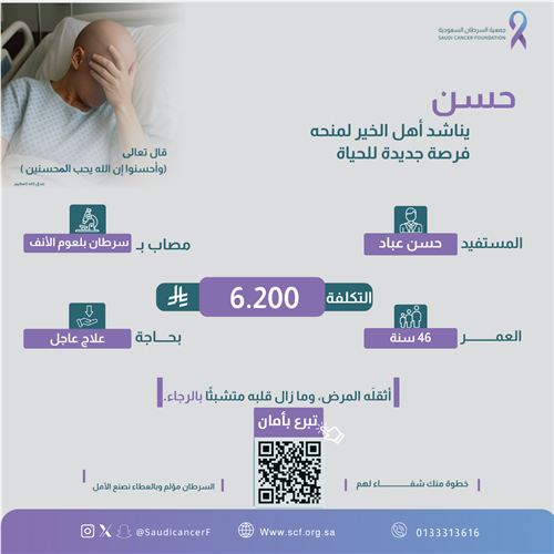 رغم أن سرطان البلعوم الأنف يفرض عليه أياما صعبة وتحديات صحية تثقل جسده الا أن هذا الرجل البالغ 46 عاما مازال يعاند اليأس بقلب مؤمن ويتشبث بالعلاج وبالأمل في أن يتجاوز هذه المحنة بإذن الله